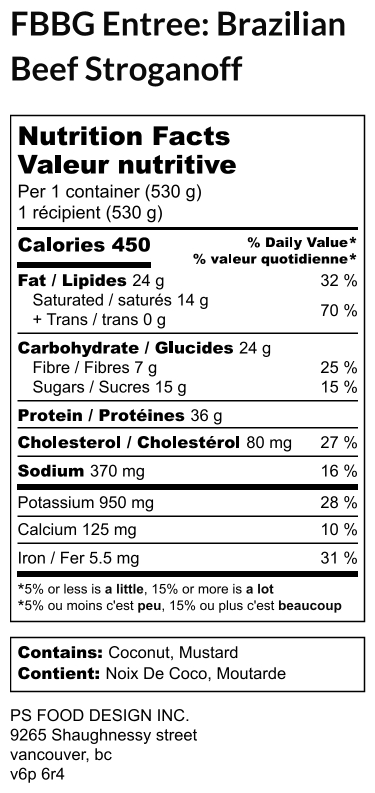AAA sirloin strips, mushrooms, coconut milk, tomato puree, mustard, gluten free Worcestershire sauce, cauliflower rice, herbs & spices