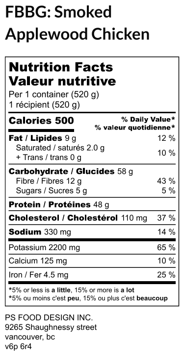 Protein 91g | Carbs 143g | Fat 40g | Fiber 34g