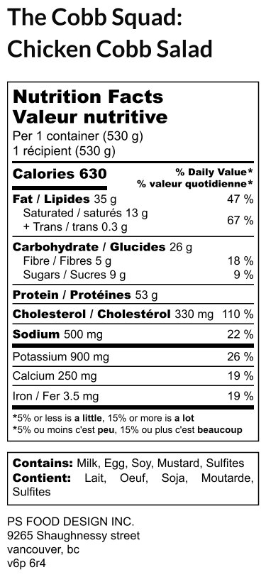 Rossdown chicken breast, garlic & herb seasonings, garlic pepper dressing (Greek yoghurt, olive oil, lemon juice, white wine vinegar, dijon mustard, garlic, black pepper, salt), spinach, romaine lettuce, egg, grape tomatoes, red onion, blue cheese, lemon, herbs & spices