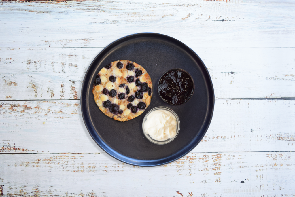 Organic gluten free oats baked with flax, chia, isolate protein, blueberries & white chocolate served with house made blueberry compote, vanilla Greek yoghurt & hard boiled egg