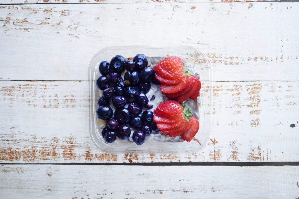 Organic gluten free oats, pecans, dried cranberries, shredded coconut, ground flaxseed, cinnamon, salt, peaches, Greek yoghurt, lemon juice, vanilla extract, strawberries, blueberries
