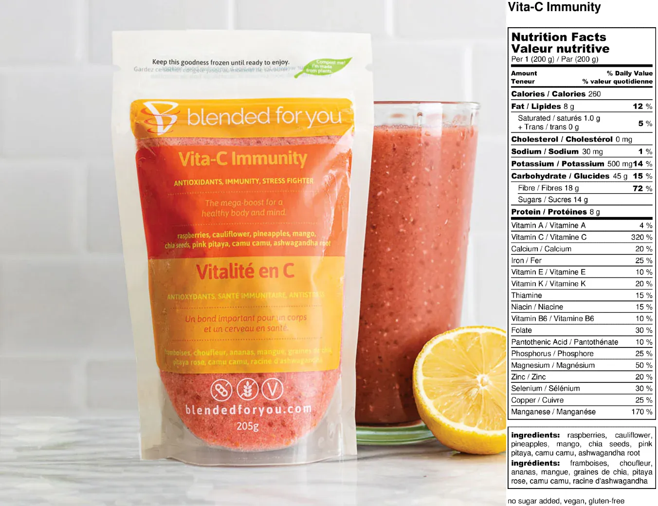 calories 270 / protein 21g / carbs 28g / fat 10g / fibre 11g - • Vita-C Immunity