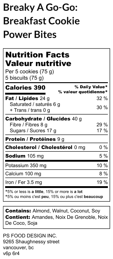 Hover For Ingredients organic peanut butter, vanilla, organic maple syrup, vegan protein powder (yellow pea protein isolate, organic hemp protein concentrate, sacha inchi protein, organic sunflower protein, xanthan gum, natural & organic flavours, organic stevia leaf extract), gluten free organic crispy puffed rice (brown rice flour, sugar cane juice, sea salt, molasses), dark chocolate (unsweetened chocolate; sugar; cocoa butter; soy lecithin, sunflower lecithin, canola lecithin; natural vanilla flavour), shredded coconut (chocolate is processed in a facility that contains milk)5.00 out of 5$9.25Add to cart Login or Register to Buy -