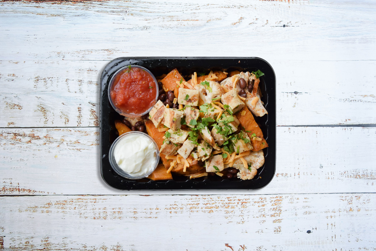 Rossdown Halal Chicken breast, Tex Mex seasonings, sweet potatoes, olive oil, cauliflower, taco seasonings, tomatoes, jalapeño, garlic, red chillies, lime juice, salt, cilantro, green onion, black beans, cheddar cheese, Greek yoghurt, herbs & spices